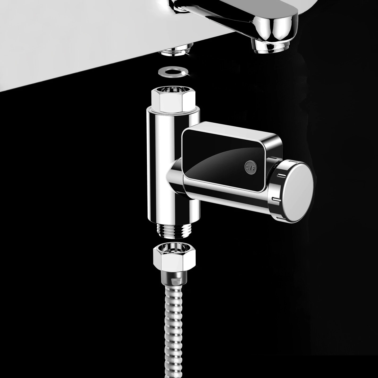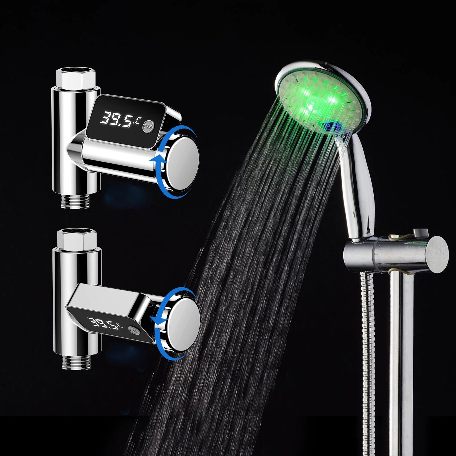 Simplify your shower experience with our easy-to-install water temperature display system. No tools required – just connect it between the outlet and the shower hose.